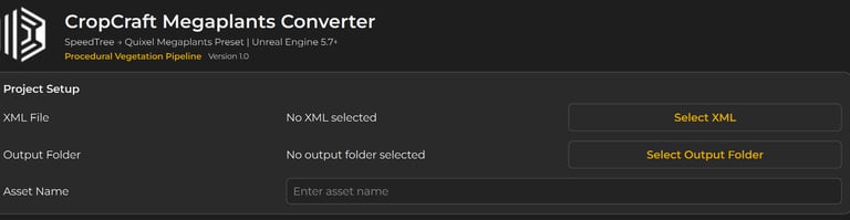 Megaplants Converter is a lightweight utility designed to bridge SpeedTree exports with the Unreal Engine Megaplants workflow.