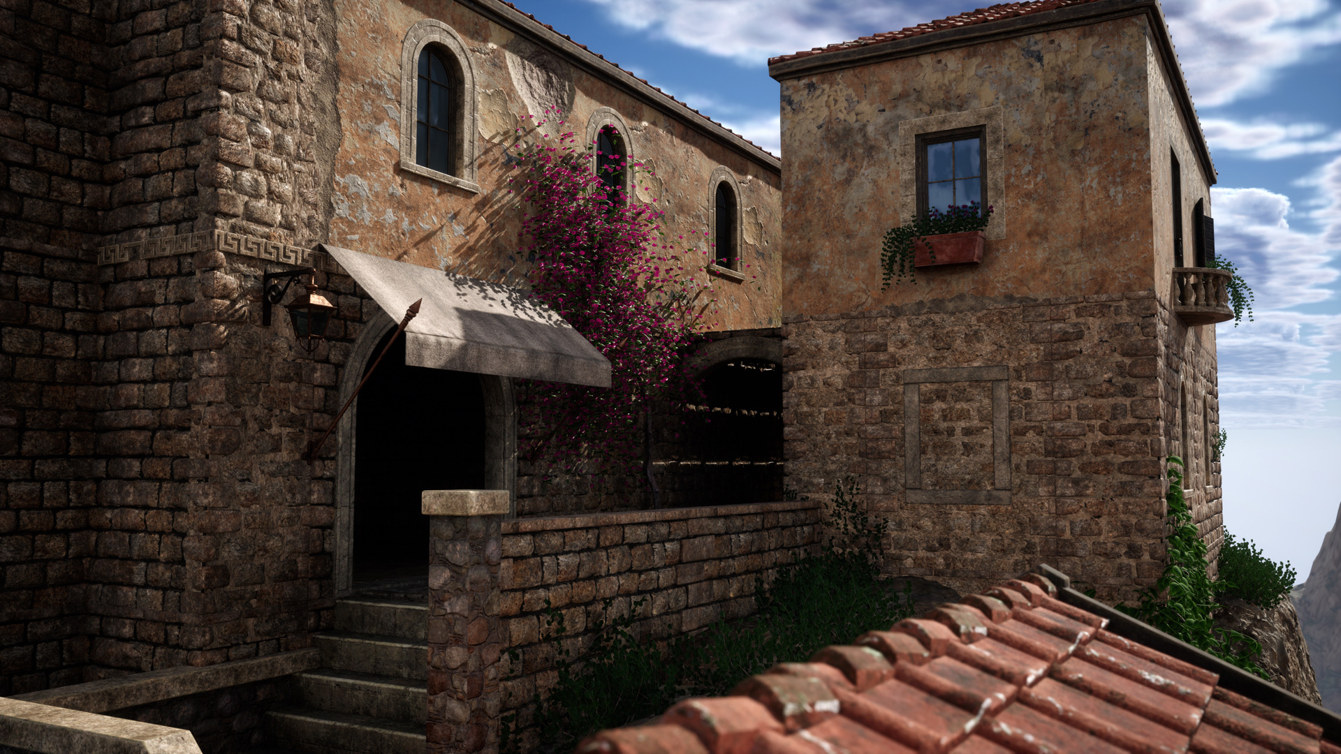 Additionally, modular structures provide the opportunity to create indoor spaces. While not as detailed as outdoor areas, you can still design the interior of each house. Doors and window shutters are operable. The package includes a map named "Old Town" as an example of package usage. The package is entirely inspired by Mediterranean townships.